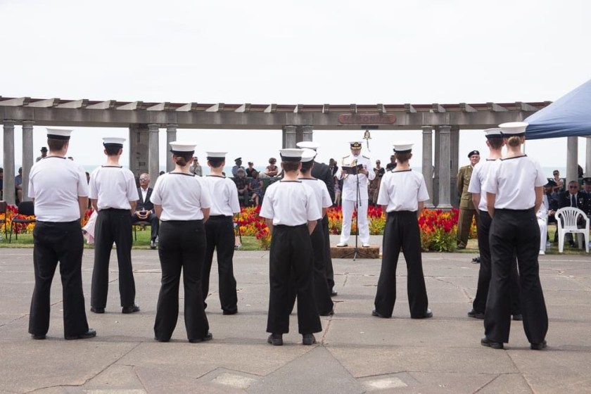 The Chief of Navy, Rear Admiral David Proctor, addresses the TS Ahuriri Recognition Parade, February 2021.